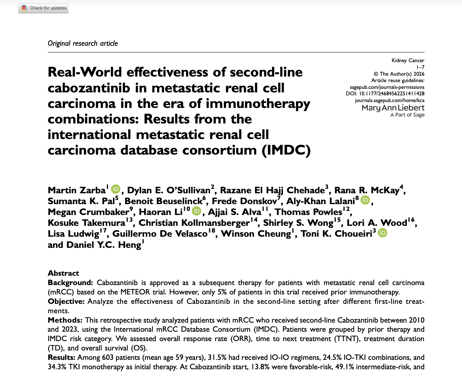 Real-World effectivenes of second-line cabozantinib in metastatic renal cell carcinoma in the era of immunotherapy combinations: Results from the international metastatic renal cell carcinoma database consortium (IMDC)